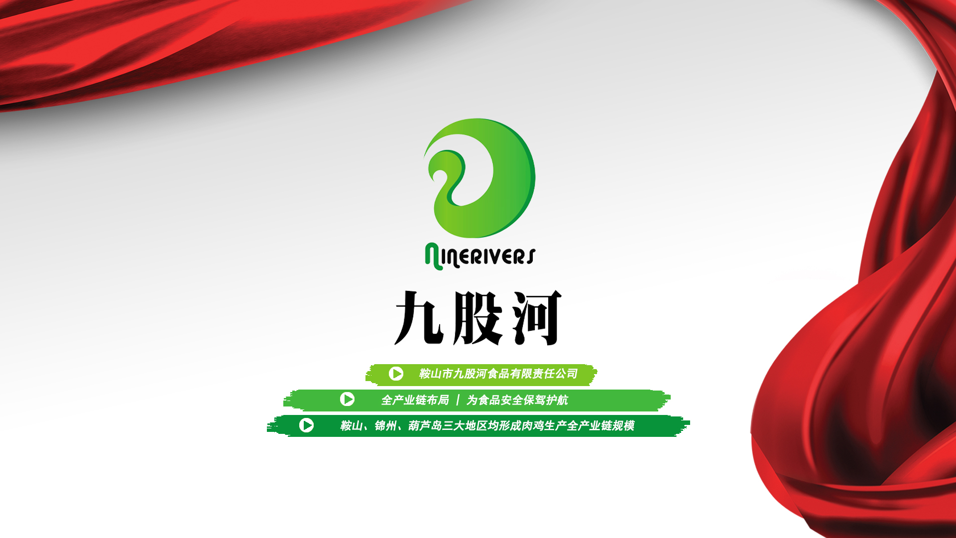 1997年丨九股河誕生于遼寧臺安,成立臺安縣九股河農業發(fā)展有限公司2003年丨九股河走進錦州市,在凌海成立凌海九股河食品有限公司2008年丨成立凌海九股河飼料有限公司2010年丨九股河與禾豐合作后,成立鞍山市九股河食品有限責任公司,從此,禾豐九股河走進了高速發(fā)展之路2011年丨繼續(xù)在遼西闊步,成立葫蘆島九股河食品有限公司同年,臺安縣九股河農業發(fā)展有限公司養殖部成立,按下規(guī)?;\養小區建設的快進鍵2